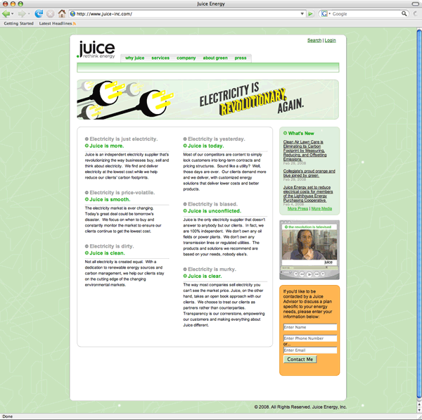 juice is a energy company that provides regulation free energy, that comes from green energy sources. They also buy Renewable Energy Certificate (RECs) to offset any energy they get that is not green.