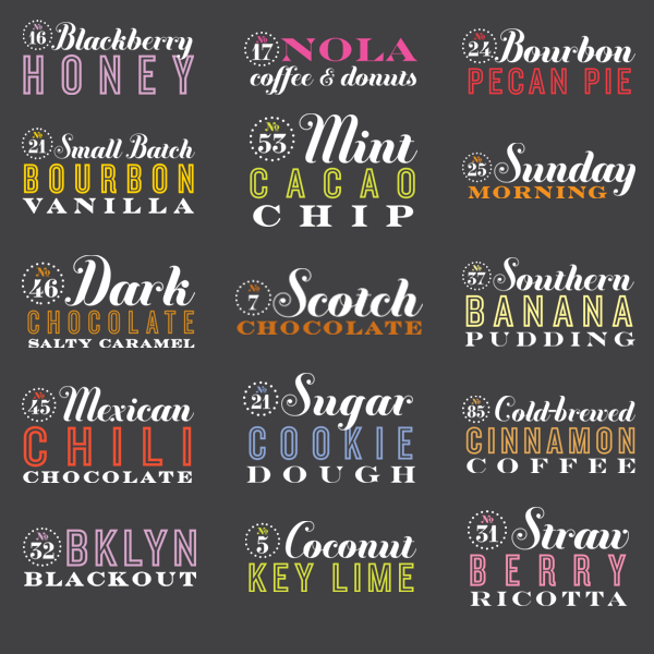 I designed the type lock ups for the flavors and laid out the mechanicals for the packages.